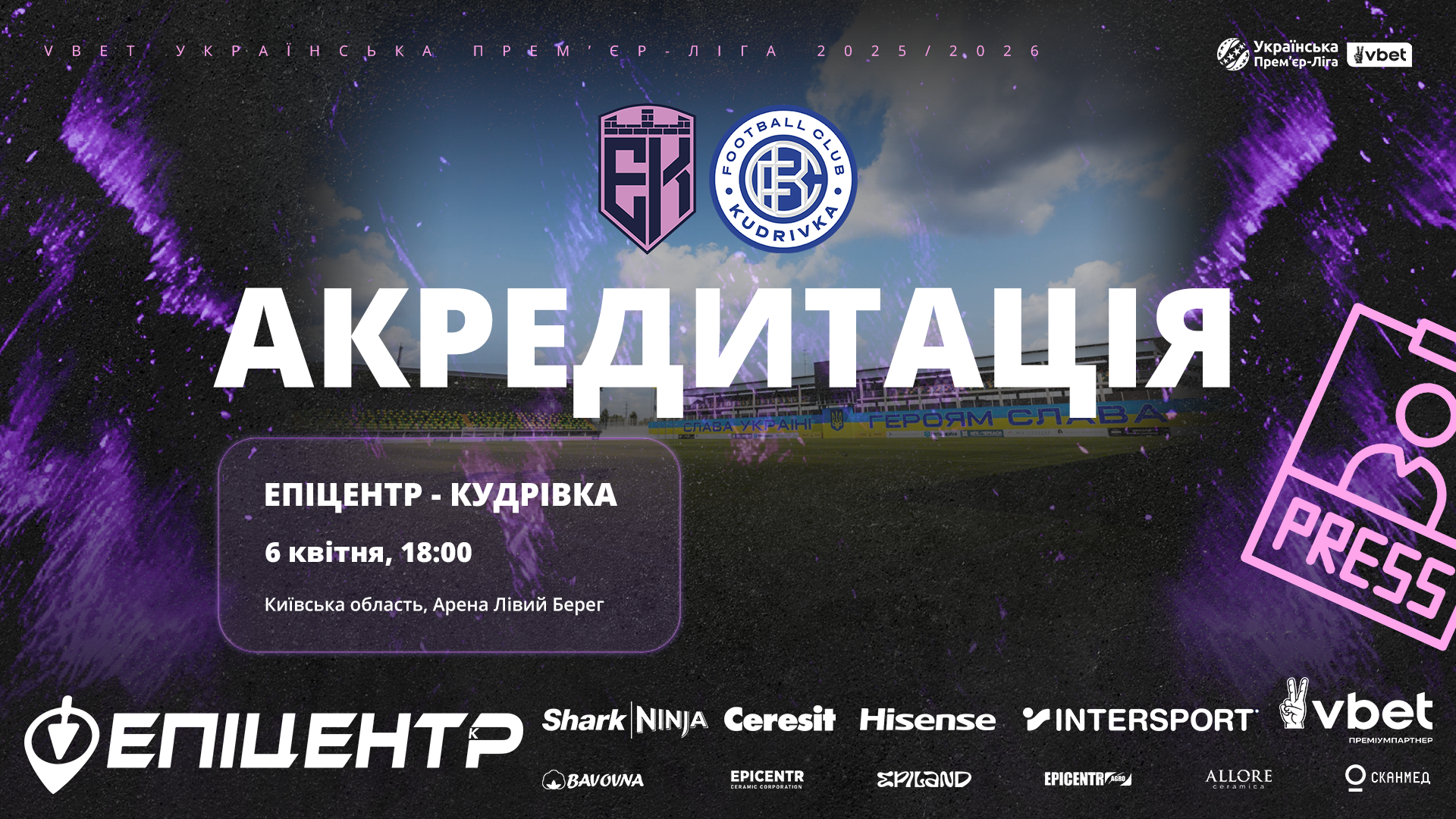 Акредитація на матч «Епіцентр» – «Кудрівка»