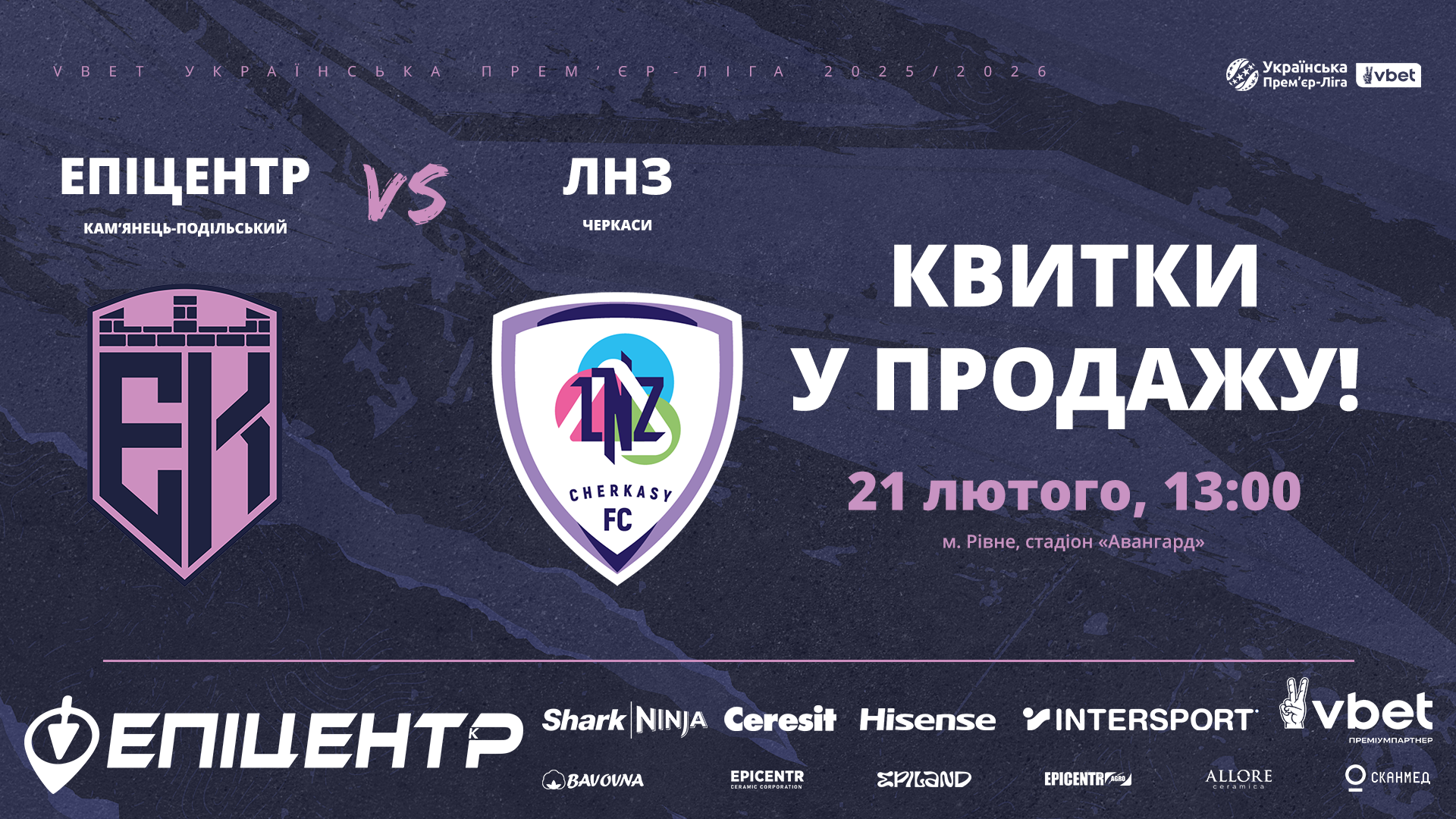 У 17-му турі VBET Української Прем’єр-Ліги ФК «Епіцентр» із Кам’янця-Подільського прийматиме черкаський «ЛНЗ». Цей поєдинок відбудеться 21 лютого о 13:00 в Рівному на стадіоні «Авангард».