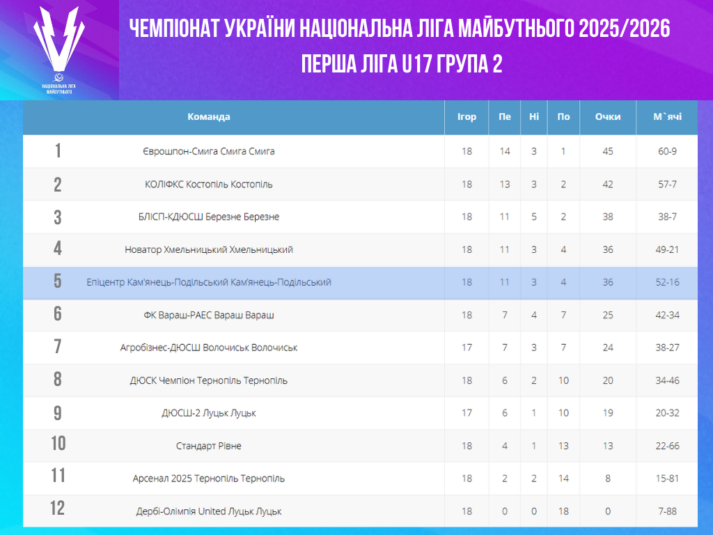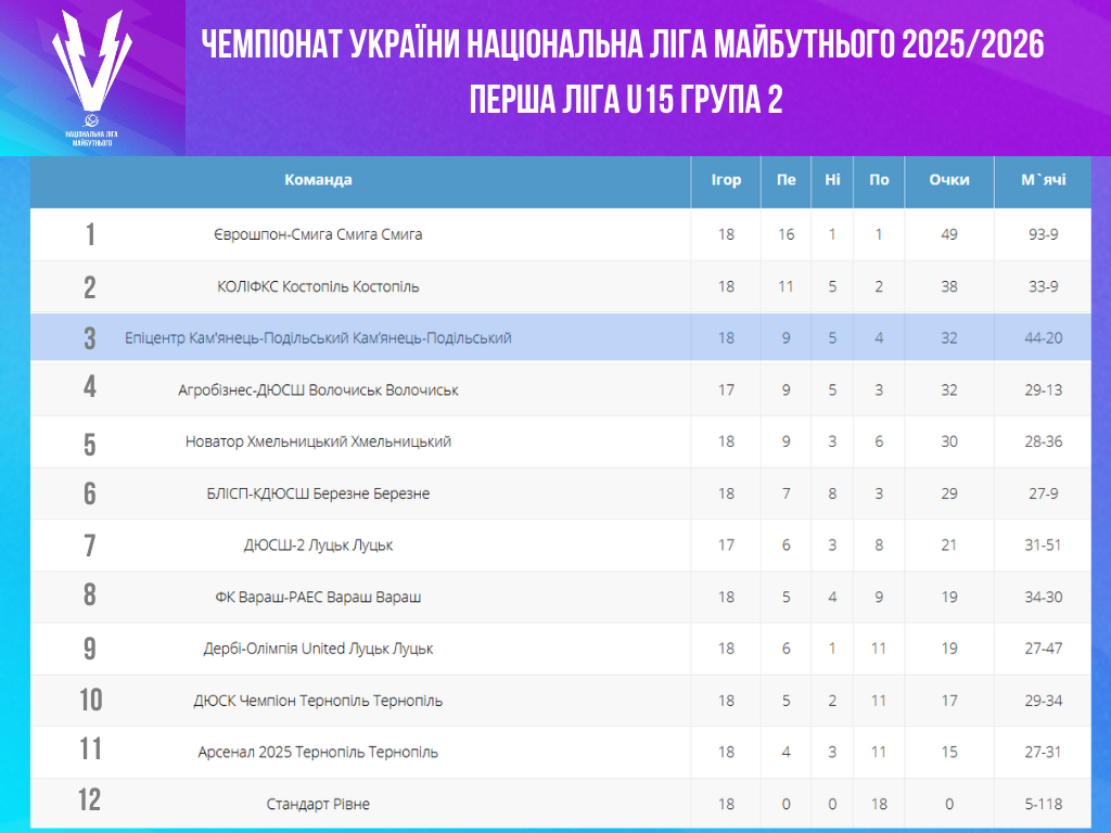 У наступному турі наші юнаки гратимуть в Хмельницькому проти «Новатора». Ці поєдинки заплановані на 10 квітня. У першому колі «Епіцентр» U-17 програв хмельничанам 2:3, а «Епіцентр» U-15 переміг 2:0.