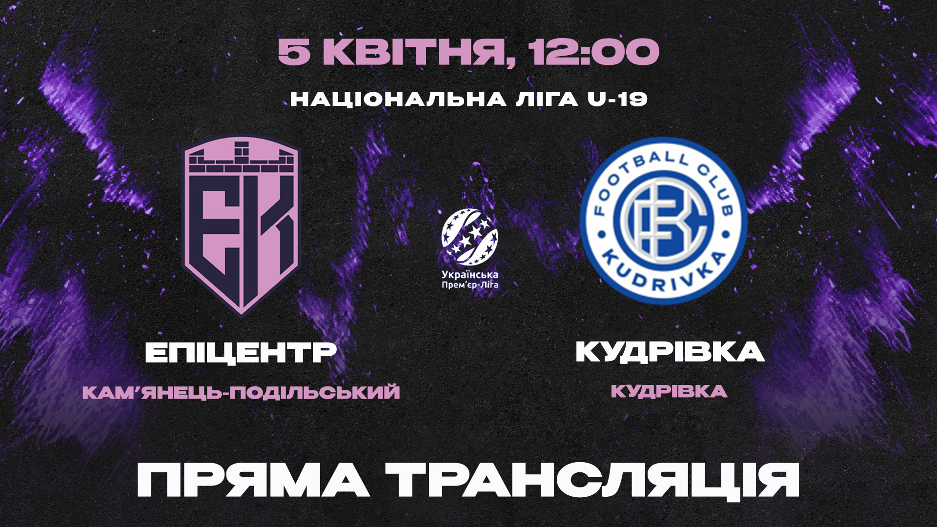 5 квітня в 22-му турі Національної Ліги U-19 кам’янець-подільський «Епіцентр» зіграє проти ФК «Кудрівка».