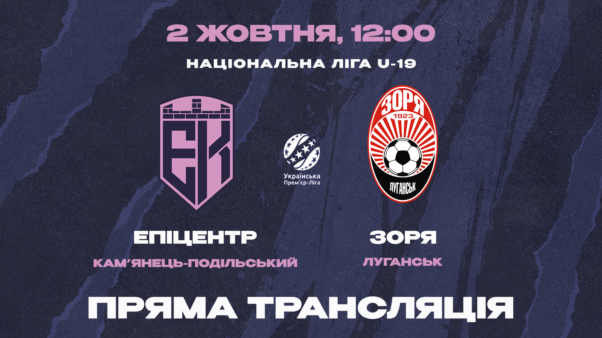 Пропонуємо Вашій увазі пряму трансляцію матчу Національної Ліги U-19 «Епіцентр» – «Зоря», початок якого запланований 2 жовтня о 12:00. І принагідно нагадуємо, що завтра, 3 жовтня, відбудеться матч 8 туру VBET Української Прем’єр-Ліги «Епіцентр» – «Зоря», який траснлюватиме УПЛ ТБ о 18:00. Ми ж запрошуємо усіх на тернопільський стадіон «Ім. Романа Шухевича» підтримати нашу команду. Кивтки онлайн доступні на посиланням https://te.kontramarka.ua/uk/fk-epicentr-fk-zora-110159.html